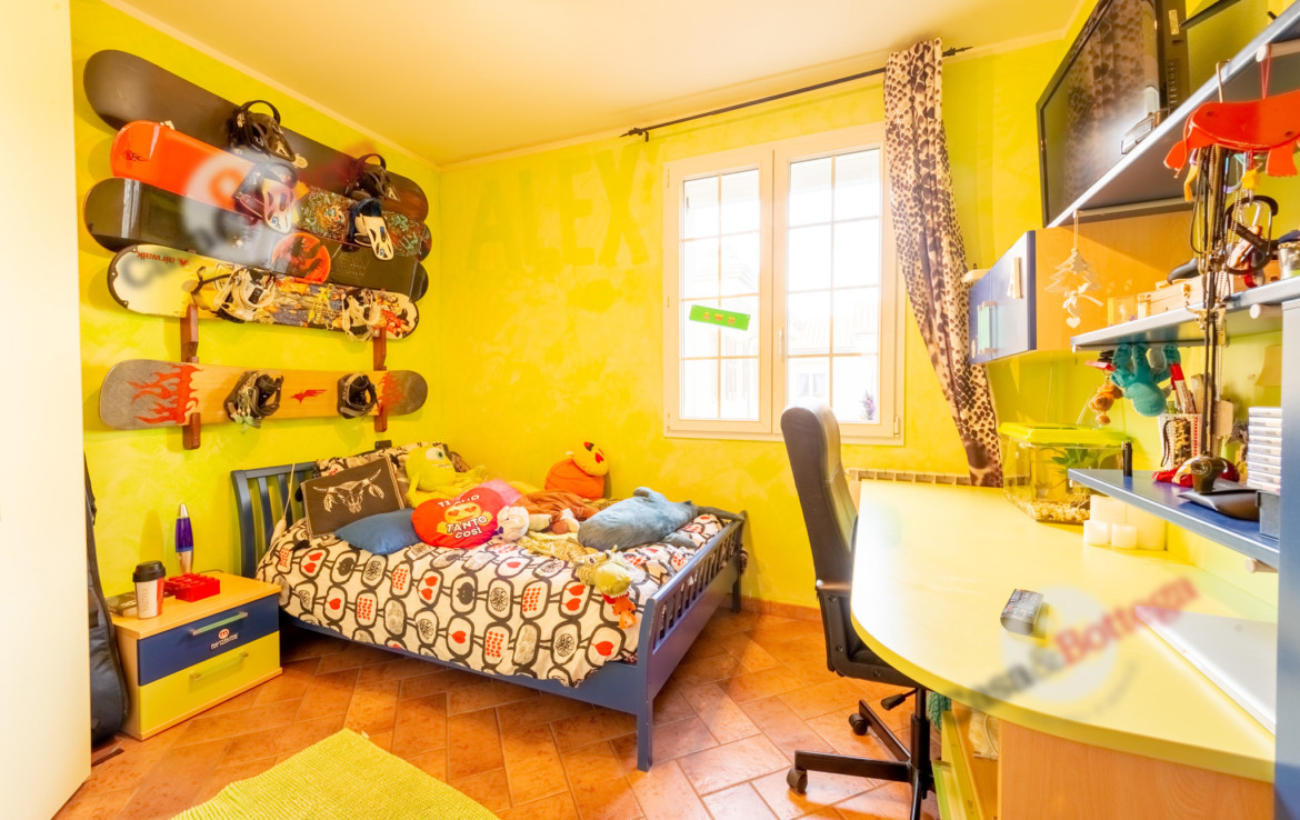 La casa ha ingresso indipendente ed è disposta su due livelli oltre la mansarda. Al piano terra è composta da ingresso, soggiorno con appartato angolo cottura arredato di cucina in muratura e bagno con box doccia. Al piano primo c’è la zona notte, composta da tre camere da letto, di cui una matrimoniale con balcone e due singole, ed ampio bagno con vasca idromassaggio.